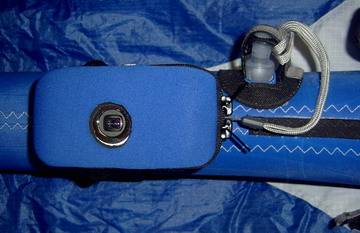 For added safety I also loop the camera's leash around the velcro valve strap on the strut. That way, if the camera was to fall out of the case, or the velcro comes undone, the camera will still be attached to the kite and not fall off and sink to the bottom of the ocean!. It also keeps the camera leash well out of the way so it doesn't end up in the shot.