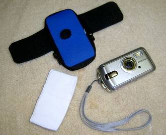 I bought a neoprene case for the camera and cut a hole in the front for the lens. I then cut a 50mm slit on either side of the case so I could thread a 50mm velcro strap though. I also glued some velcro to the back of the camera case for extra strengh when attaching it to the kite. For additional support, and to make the camera a really tight fit in the case, I inserted a thin piece of high density foam.