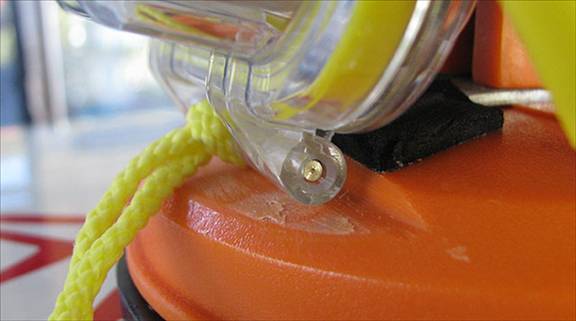 Thread the water ski rope float onto the end of the tie-down strap. Tie a figure eight knot on the end so it cannot slide off. This is necessary as the complete unit doesn't float without adding this extra piece of buoyancy.