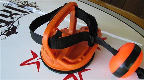 Place the suction cup in the appropriate position on the nose of your board. It should be dead centre and as far forward as possible while still remaining on a flat part of the board.