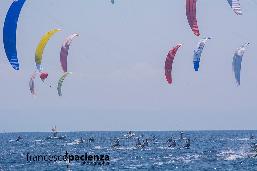 Nocher, on the back of winning the KiteFoil GoldCup Italy on the same track a week earlier, scored a bullet, a third and fourth that took him to the top of the order on the day when most riders stuck with their biggest 18m kites, yet still had difficulty judging the lay line to the top mark in the fickle, shifting breeze. But like day three where a spate of upheld protests in the jury room radically transformed the standings, the judges' decisions had huge implications with the fleets going into the medal races where the top 10 men and women riders face off in four races, carrying forward their points tally.