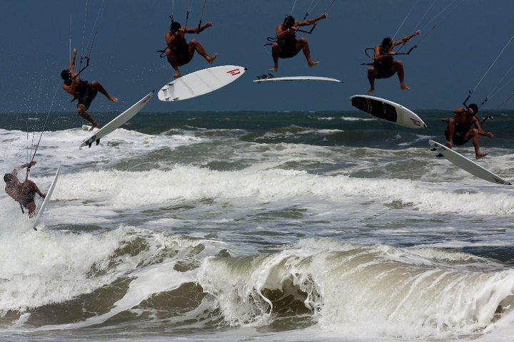 A great sequence showed up on Facebook this week of Kyron Rathbone busting out a huge kickflip with a surfboard and a kite. It clearly shows the essence of the 'kickflip' which involves flipping a board 360 degrees along it's longitudinal axis (nose to tail). (Check out the picture if you don't get it).