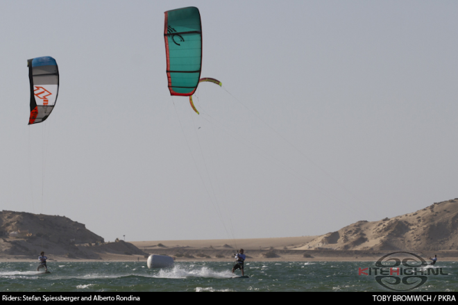 Well, in the latest PKRA heats, Cabrinha riders have been spotted by Kitehigh .nl testing a new freestyle kite. This looks like a C kite to us! It's got a mini bridle, and in fact it looks almost identical to the Ozone C4 is almost every way. Even the bar is different, there's no IDS system and a shorter depower throw. All very C kite like attributes.