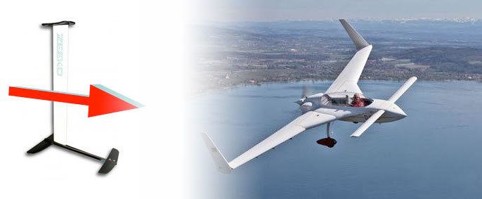 So how does it work? Well the basics are exactly the same, the main wing lifts, the stabiliser stabilises. Except with a canard, the stabiliser provides lift. So both the foils are providing lift, which seems efficient right? With a conventional foil, the stabiliser actually pulls the tail of the foil down to provide its stabilising effect. This means it's pulling the foil back down, contrary to the whole point of a foil.