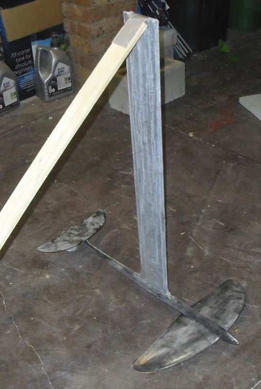 The basic foil is built on hand shaped plywood with a glass and carbon skin over it. Don’t try and skimp and do it without the carbon – it needs it to be sufficiently stiff.