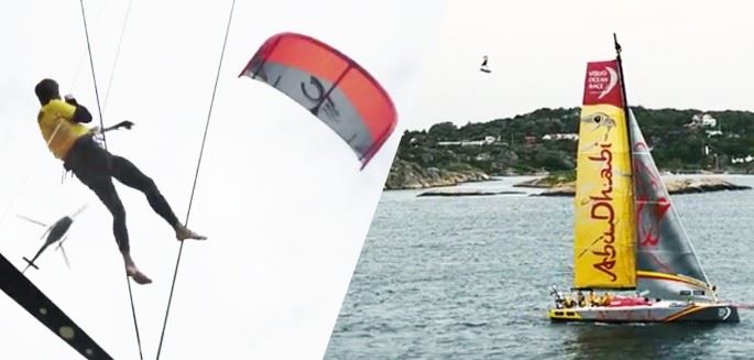 30m high and rocking back and forth, Nick couldn’t resist an offer from the Ocean Racing team to boost from the top of their mainsail. With such a square top, and a convenient flat section to balance his board from, the boost went perfectly to plan, with a quick kiteloop and silky smooth landing, Jacobsen showed that he really is the master of ‘jumping off stuff’.