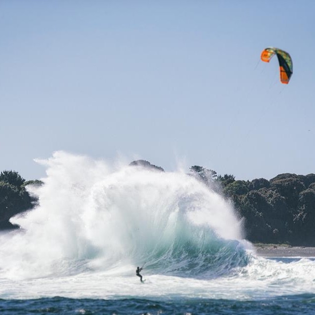 Already this year they’ve been to Polynesia (remember it’s only February) and now they’re docked in Chile. Aboard is Reo Stevens, a professional kiteboarder from the North Shore of Oahu, and he’s chasing waves. Big ones, gnarly ones and fast ones. And then there’s this, a monster that’s turned back on itself and erupted at least ten meters straight up. Would you get amongst this?