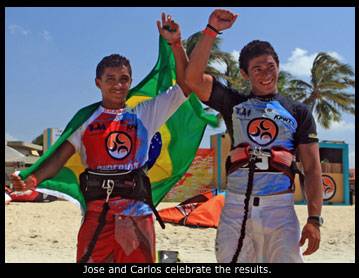 Both Jose and Carlos have been training hard with the help of Leeshai Miller, and the results were a great payoff for all the training and hard work. Both are on their way to the PKRA stop in Brazil this week and it will be interesting to see how they fare against the likes of Aaron Hadlow and Naish's own Kevin Lagree.