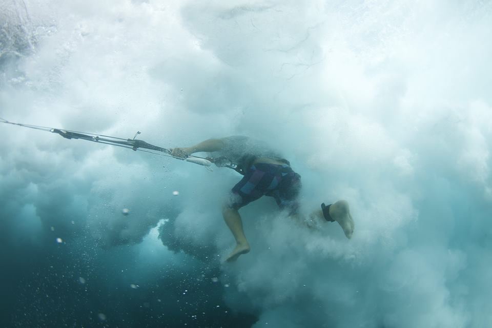 “For anyone wondering, this is what it look like when you get worked pulling into barrels kiting.” Says Keahi. “A big tip to remember is to always focus on steering the kite up to help pull you through the back when you fall. If keep the kite up you'll come trough relatively unscathed every time.”