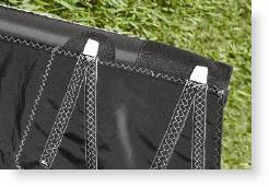 ![]() | Double reinforced back line attachments: We know that you are going to ride this kite hard, so we?ve strengthened every contact area on the kite. The rear line attachment webbing is given its own pocketed sleeve in the wingtips then finished off with two layers of reinforced stitching. |