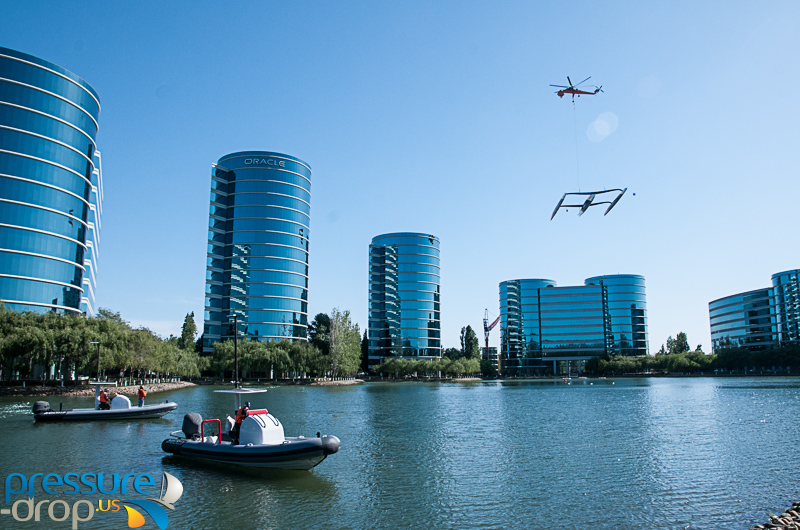Getting a thirty four meter yacht into a lake is certainly no small task. Not even the largest construction cranes would get it there properly. So the team at Oracle required the use of a helicopter. One very large, and extremely ugly helicopter with one purpose: lifting big stuff. The Erikson Skycrane air-lifted the yacht from San Francisco to its new home of Redwood Shores, right outside the Oracle HQ in just a few hours.