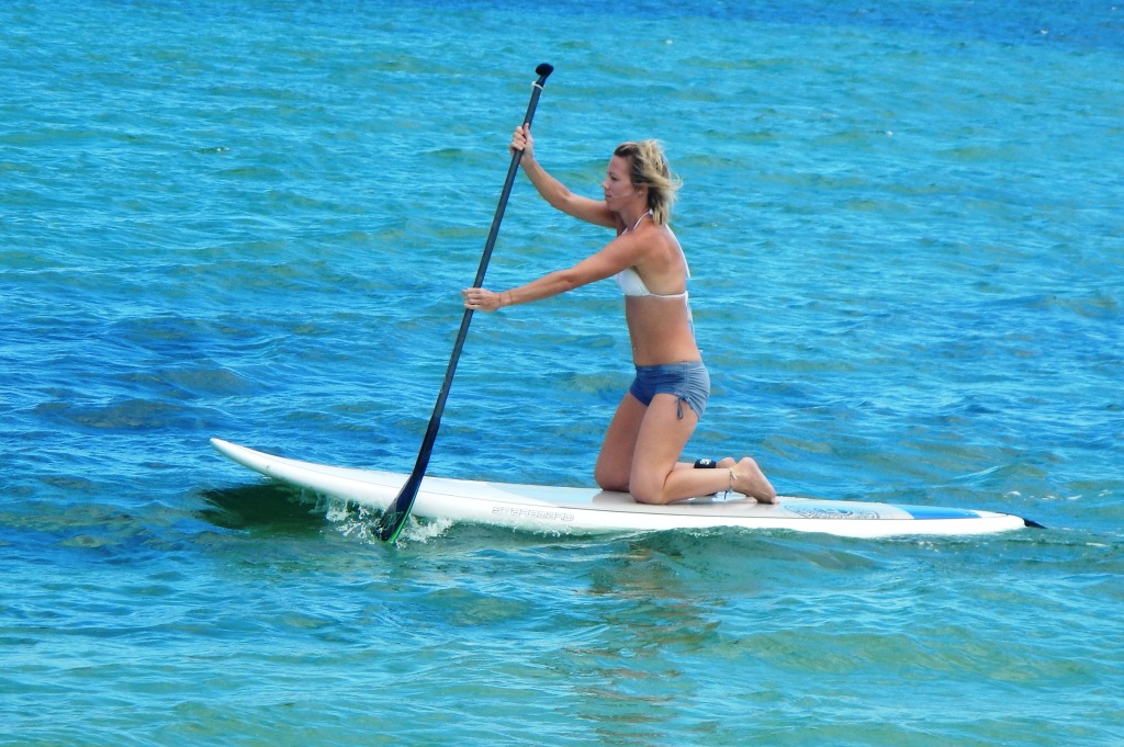 When you feel comfortable, balanced and confident on the board in flat water, it is the time to add in some paddling.