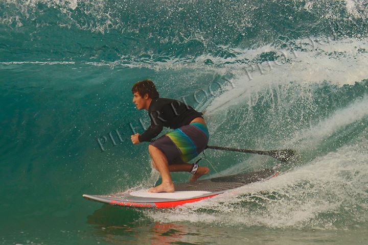 Just thought we'd add that little tidbit of information because it's pretty big news in the kite world. Anyway, back to stand up paddling. And did you know why Keahi's so good at aerials? He doesn't really know why he can't do them on a shortboard, but he does think it might have something to do with the fact he has something to balance on with both SUP and a kite. That balance point allows him to drive harder at the lip, or whatever it is that allows him to pop that whopping great board out of the water.