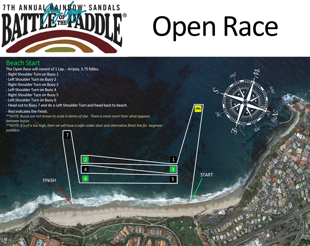 Instead of paddling in and out multiple times through the surf, stand up paddlers will now paddle out through the breakers, then paddle three laps around a course running parallel to the beach (Keeping them out of the breaking swell). They will then paddle back out to sea a little, turn the final buoy and surf back to the beach for a running finish. In the event of very large swell, event organisers have plans in place for a safer water based starting line to help out the beginner paddlers.