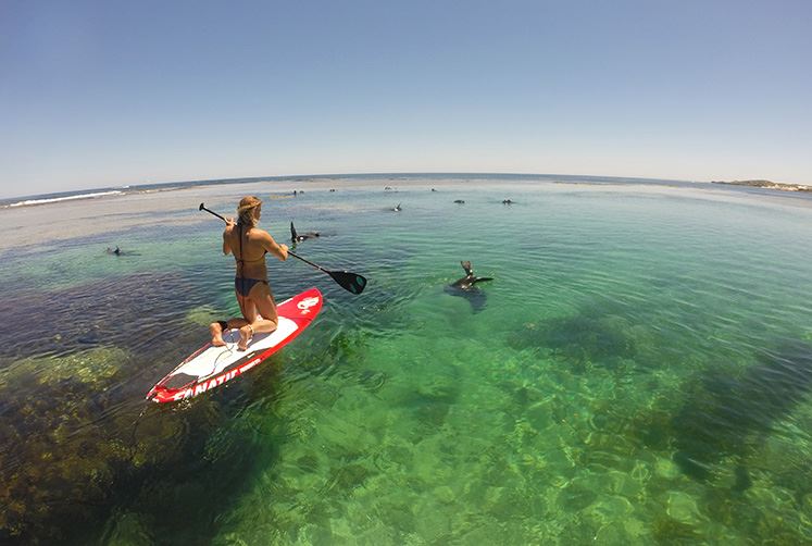 New Zealand Fur Seals are one of Rottnest Islands biggest attractions, they hang out super close to the beach feeding on fish and small birds. When humans are around, the seals are pretty inquisitive, often coming right up to tourists and checking them out. That’s what seems to be the case with Gabi and her stand up paddle board, which also makes for some incredible photos!
