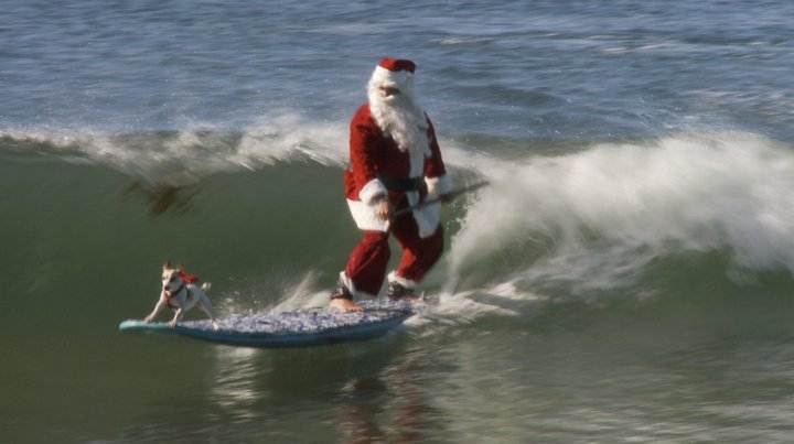 And the best of all, thanks to the GoPro camera on the nose of santa’s board, he captured a decent wipeout when he failed to turn down the line fast enough. You can see it happening, your mind screams "Turn Santa TURN!!!!" but he doesn't. Maybe he was distracted by a potential Mrs Claus on the beach…