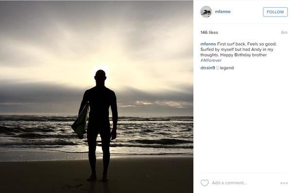 "First surf back. Feels so good. Surfed by myself but had Andy in my thoughts. Happy Birthday brother"
