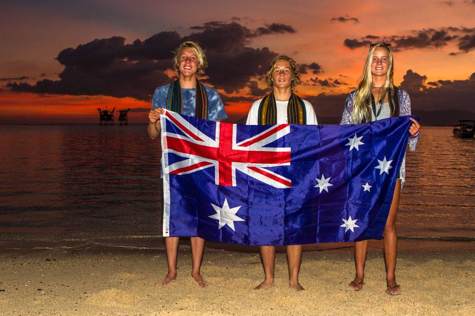 Jacob Willcox, Jackson Giles, & Isabella Nichols are flying the Aussie flag against the worlds best under-age surfers. Sixteen grommies will paddle out, at Lakey Peak, Sumbawa Indonesia thanks to a worldwide search by Rip Curl. Looking for the worlds best young surfers, the GromSearch has been running since 2011, now in it’s fourth year and growing each event.