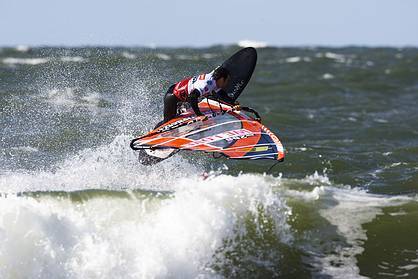 For the rest of the heats, the conditions were so light and variable that only the 2008 World Champion, Jose 'Gollito' Estredo (Fanatic, North), was able to express himself fully and move through to the next round. Estredo landed his full quota of moves including lollipops, flaka's, and bob's whilst others failed to land even one move.