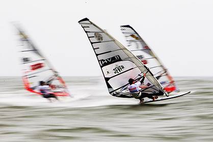 In the first race of the day Sylt's many spectators saw a new character claiming line honours in the form of 2009 overall rankings runner up, Finian Maynard (RRD, Gaastra). Following a successful second day of racing yesterday, having enlisted the help of British Wave Champion and RRD team manger, John Skye (RRD, MFC) for a small fee, the Irish blooded British Virgin Island resident shot right up the rankings. Maynard's caddy commented, "My boss has done an amazing job on the water today, but I'd have to say some of that success is clearly down to the team behind him (me). Just look at the results, I've helped him go from 30thto 3rdin the space of two days!" Maynard replied, "John's help has been invaluable over these past two days, but he really needs to work on his slalom technique!"