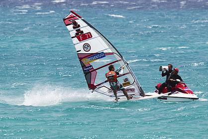 The idyllic racing conditions found on the southern shores of Fuerteventura today provided the perfect start to this very special 25thanniversary grand slam. From first light, the wind showed great promise with the North Easterly trades guaranteeing the action. The course was set early enabling the sailors to commence battle on schedule at 10:00 in front of the many spectators lining the shore.