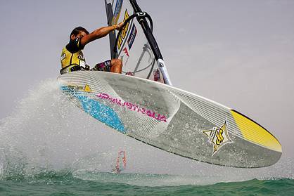 The sailor of the day was tour regular and current top five ranked styler, Maarten Van Ochten (JP, NeilPryde, MFC) who would have been forgiven for feeling a little bit nervous going into his heat against the 2009 Pozo wave champion, Philip Koster (Starboard, NeilPryde, Dakine). All eyes had been on Koster during practise to see how he would perform in the discipline of freestyle, especially in the lighter winds which the contest was being held in. Koster looked like he had plenty of moves in the bag, but they were no match for the seasoned freestyle pro, Van Ochten who pulled off a more diverse range of technical moves in the six-minute heat. There's no doubt Koster will fight back in the double, especially if the forecast comes to fruition.