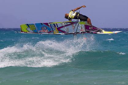 Following a defeat yesterday in the first double elimination, the three times world champion and current tour leader, Jose 'Gollito' Estredo (Fanatic, North) reaffirmed his dominance by taking down Belgian boy wonder, Steven Van Broeckhoven (F2, Gaastra) in an epic second single elimination showdown.