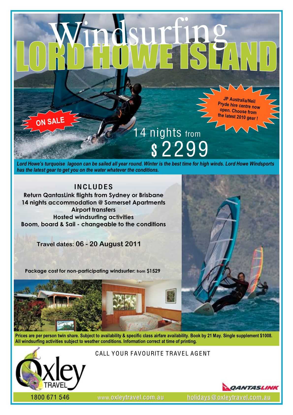 Please feel free to just come for a week or 10 days if you want, Lord Howe Windsports will do a hire package for you for whatever time you want to come for.