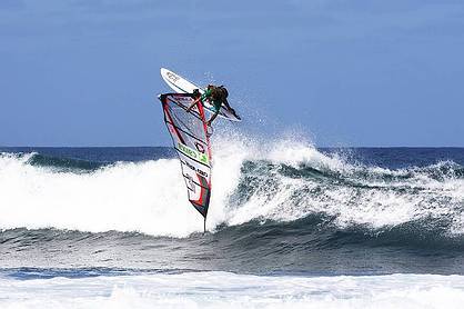 ??"As I told you, I use a twin fin for waveriding and a single for jumping, I rig my sails pretty baggy and always go smaller sizes, I put the mast track in the middle and the fins under my back feet."