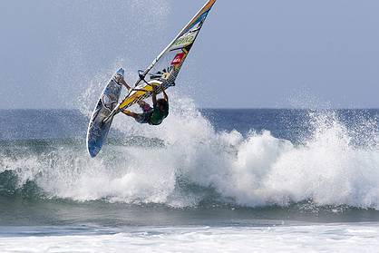 After a short period on standby the PWA's finest were released from the heat of Curral Joul to head home and rest before fighting it out another day. Almost everyone left apart from featherweight team-mates, Thomas Traversa (Tabou, Gaastra), and Alex Mussolini (Tabou, Gaastra), who decided to float out to sea and wait for the occasional wave. Although the conditions weren't suitable for official competition, these two scored numerous rides in their hour-long session, and were caught on camera by PWA lens man, John Carter.