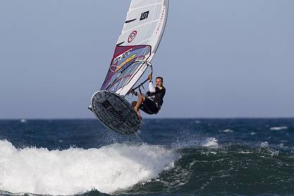 Minutes after Bjorn Dunkerbeck (Starboard, Severne, Mystic) hit the water his mast was in pieces. With very little time left before his heat, many of the spectators thought he'd blown it. However, luck seemed to be very much on his side. Just as the heat before his was about to go into sequence, one of the marks broke free from its anchor and surfed its way into the shore on the pumping swell. Luckily, this bought Dunkerbeck more than enough time to make it to the beach and sort out some new gear.