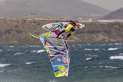 A return of the relentless winds in Pozo allowed for a full day of sensational world tour competition with a single elimination completed for both the men's and women's fleets, and the first two rounds of the double down for the men. Competitors were maxed on 4.5s early in the morning enabling the competition to start on schedule at 09:30, and run right through to the early evening.