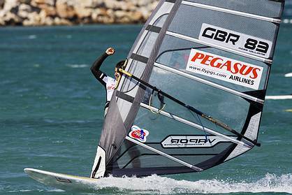 Standout performance of the early rounds was local hero Bora Kozanoglu (Starboard/NeilPryde). In the first heat of the day he flew into the lead, holding off Dunkerbeck (Starboard/Severne) for the entire race, winning in front of a cheering home crowd. Having just finished 1stin the Turkish Championships, he is clearly going well and was unlucky to go over the line early in the quarterfinals.