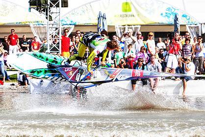 Van Broeckhoven - Sailing away from a Culo is extremely impressive in the most idyllic freestyle conditions. But, being towed behind a Jet Ski at 30kts, and then launching into the move in front of thousands of spectators, with no wind whatsoever, is in a completely different league.