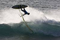 Day five of competition saw the Ponta Preta reef switch back on, delivering a seemingly endless supply of huge sets, coupled with hammering 25 knot wind to finish up the double elimination in style.Seizing the opportunity to compete in the classic Cabo Verde conditions, the wave fleet hit the water bright and early at 8.45am to pick up the action at heat 38, where it had left off previously.The second round of the double elimination saw some stand out performances from the likes of: Ricardo Campello (JP / NeilPryde / MFC), who stepped his riding up to another level to advance. Camille Juban (Gun Sails / MFC), whose super vertical attacks on the wave were both impressive and technically brilliant, and Jason Polakow (JP / NeilPryde), who had far and away the fewest waves of the event and still managed to advance thanks to consistent excellence on the wave.Entering the third round of the double elimination, mounting pressure meant that the sailors had to pull out all the stops to stand a chance of making it through the heats. Trips to the rocks became all to frequent, and the magnitude of crashes went through the roof.Stamping their names on round three were Ross Williams (Tabou / Gaastra), who took the lions share of the waves on offer, and somehow was always in the right place at the right time. Similarly, Marcilio Browne (North) dug deep into his bag of tricks to execute some amazingly tight turns and super vertical cut backs that his rivals simply couldn't match.Thomas Traversa (Tabou / Gaastra) brought his unique flare and out-and-out attitude to his heat, which saw risk be rewarded with a highly credible pass through to the next round. Joining him was Moroccan Boujmaa Guilloul (Starboard / Severne), who fended off tough opposition with some floaty aerials and late smacks that outclassed his rivals.Entering a four way standoff with only two positions available in the next round, Williams, Guilloul, Browne and Traversa when to blows in barreling mast high waves and forever increasing wind.When crunch time came, Traversa blew his chances, gambling super late smacks and deep bottom turns that were ultimately punished by the brutal Ponta Preta reef. Also departing was Guilloul, who notched up one truly brilliant wave, but failed to find a second to add to his score sheet, paying the heavy price of departure for his mistake.This left Williams and Browne entering the two-man stage of the elimination, with only one place to play for. Williams was on a roll after dominating the four previous heats, but Browne was firing. The Brazilian was just going off, cranking the tightest bottom turns before smacking contorted top turns right under the lip. Williams performed well, but Browne was literally unbeatable.Advancing to meet Francisco Goya (Goya Sails / MFC), Browne knew he had to deliver a solid performance, but rival Goya just wasn't in the groove. After dominating in the single elimination Goya struggled to find form, and essentially gave Browne a pass through to the next round after an unconvincing display.Meeting Kevin Pritchard (Starboard / Gaastra / MFC / Dakine), Browne's nerve was put to the test. Pritchard is impossibly consistent, and while sometimes lacking the flare of his rivals he rarely delivers a poor performance. This heat was no exception. Outstanding wave selection, time and time again, combined with a fluent and well-timed attack on the Ponta Preta lip gave Browne a harsh reality check. Pritchard had done enough to secure third overall for the event, leaving Browne, who'd worked his way through the double elimination, in a highly impressive fourth.So, the all too familiar showdown began. In a rerun of the 2007 World Cup, Kauli Seadi (JP / NeilPryde / Mormaii), who'd won the single elimination, had to defend his throne from the local, Josh Angulo (Angulo / MauiSails / Dakine). In this instance, Seadi's defense was over thrown by Angulo's wealth of knowledge at Ponta Preta. The pair would have to sail head to head one last time to decide the outright event winner.With a swarming local crowed chanting the name of their national windsurfing hero, the final began. Angulo drew the first blood with a colossal off the lip hit, but landed deep in the bowl, and ended up getting washed onto the rocks. Seadi seized the opportunity, putting Angulo on the back foot with two solid rides.Returning, Angulo blew everyone away with a nine-point wave ride, a rare spectacle to behold, and something truly inspiring. Following this up, Angulo launched into his usual routine of insanely late under the lip hits and perfectly timed aerials. Seadi knew he had to deliver, and right on queue, threw a perfectly landed goiter on the wave face.The heat was intense and virtually impossible to call, with two very different styles unified by the much-revered Ponta Preta Break. Crunch time came in the huge event tent, before hundred of ecstatic local fans. Angulo had reigned supreme, returning the Cabo Verde crown to its motherland in emotional scenes rarely seen at windsurfing events.This capped off the awesome Cabo Verde PWA World Cup, which is now complete with three days in hand. Thank you very much for tuning into all the action, and be sure to check out all the features available on the website, like video footage from the event, photo galleries, daily reports and more.PWA / Andrew Buchanan