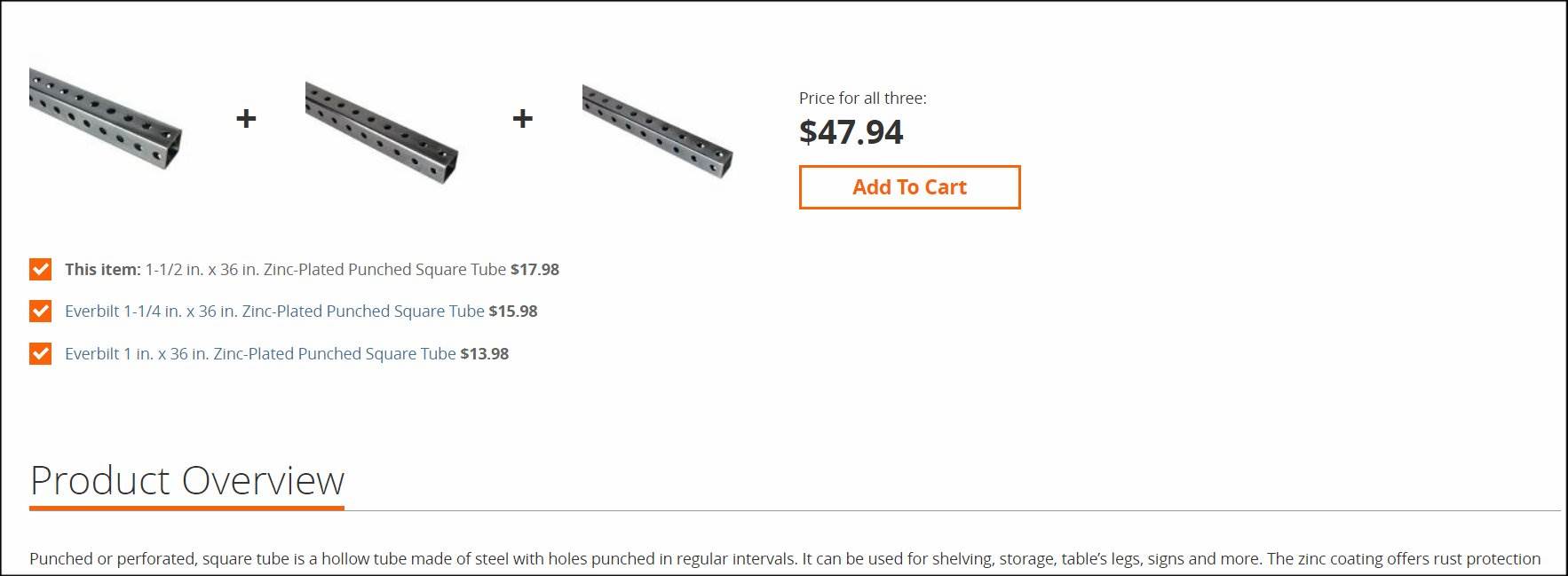HOME DEPOT PERFORATED GALVANIZED SQ TUBING