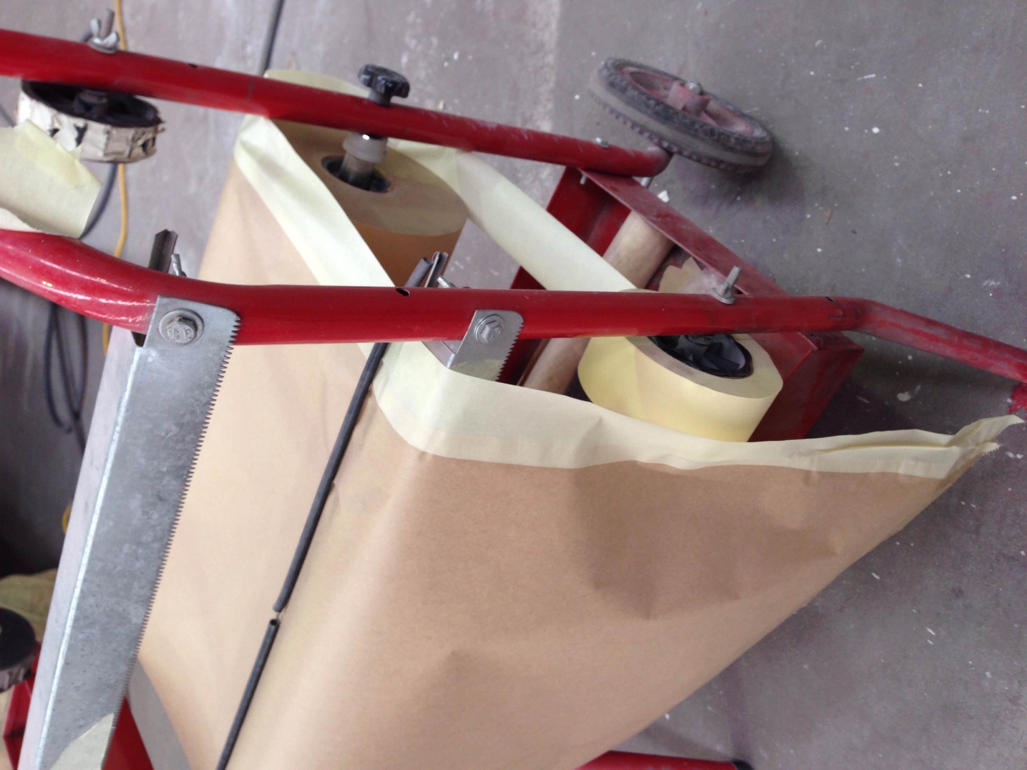 Is there a better way or a new school approach to this type of job. As you can see I just threw old blankets and sheets Over the wheels. Rough but once again works. Sprayed the rail and rolled the deck with 2 pac valspar PU