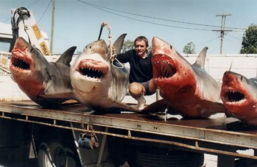 Who ever he is he must be one of the worlds leading shark trainers, but where is his little bucket of fish to get them to do the tricks ?![]()