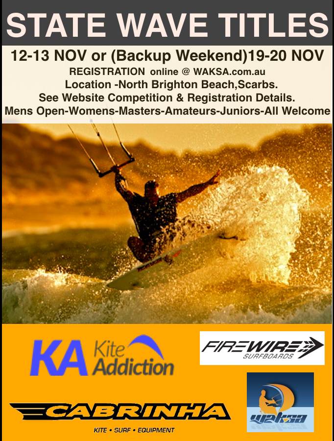 From WAKSA site - This years State Waves Titles will be run at South Brighton Beach on the weekend 12/13th November from about midday onwards.