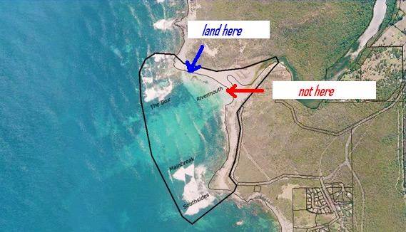 When bailing to the River Mouth DO NOT kite anywhere near the southern and of the beach, keep away from the swimmers area and the flagged area where surf lessons might be under way, DO kite to the most Northern end of the beach and land your kite there, pretty simple and reasonable I reckon.