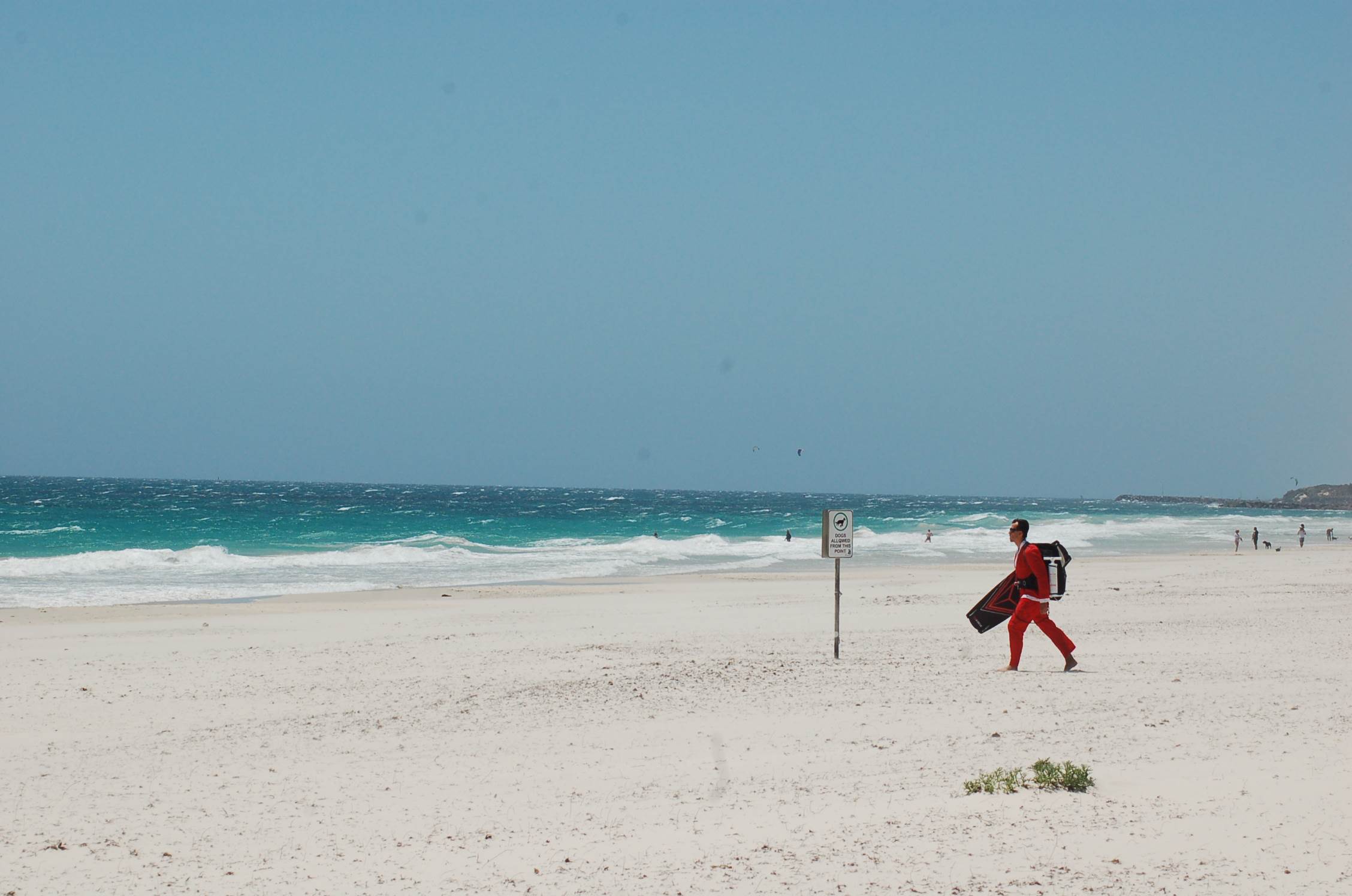 Wind is generally SW so it blows onshore at an angle left to right. You should be fine if you body drag towards the shore when you get too far offshore. Or else learn to ride on your bad side :S