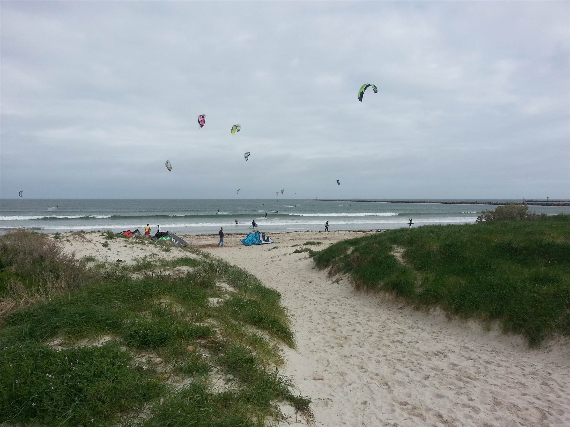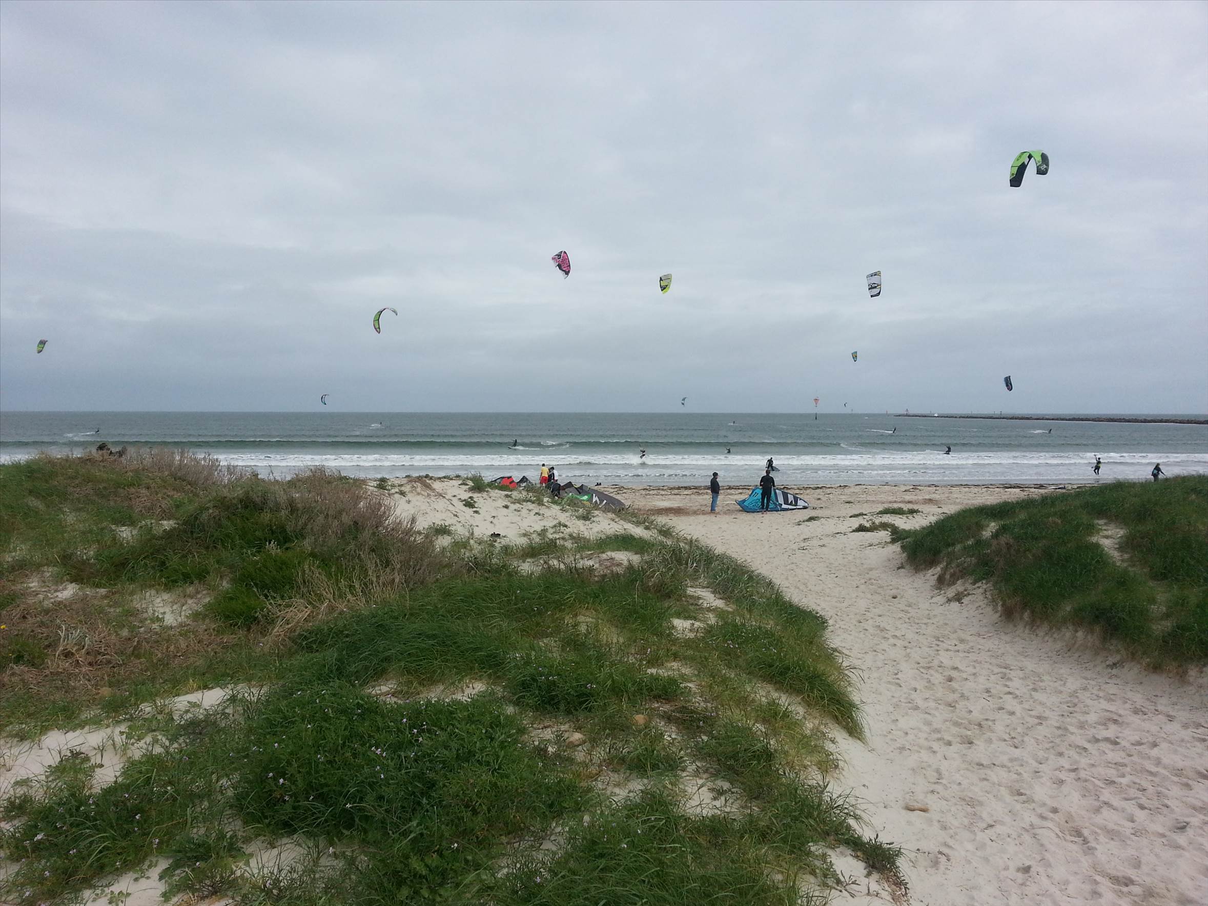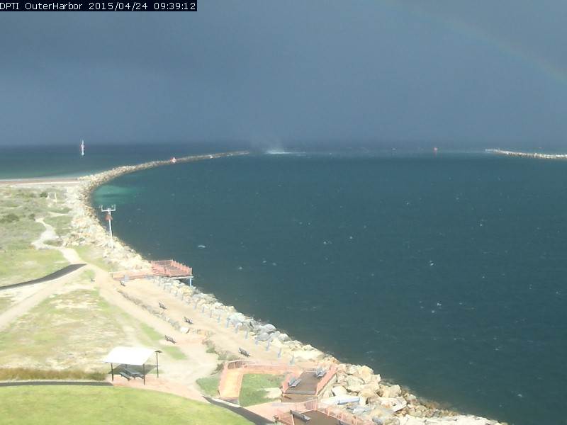 At the moment we have a very strong cold front passing through Adelaide. One of the best spots, pre-frontal is "The Wall" at North Haven. While checking the webcam, to see whether it's worth going out, captured this image of what looks like a waterspout starting. What do you think? The last two is The Wall on a good day.