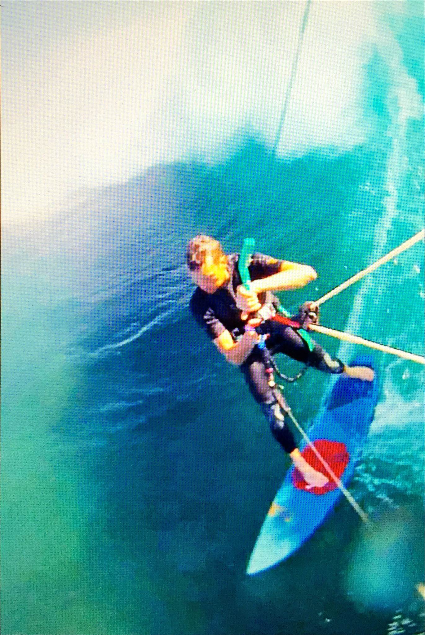 Setup: 5'9" board, strapless, front deck pad, no wax, Flying Objects harness