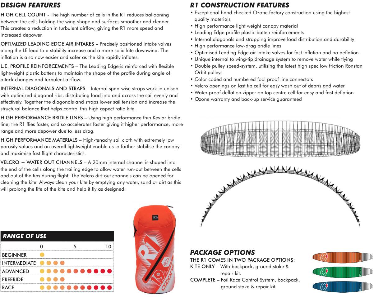 The details are also very clear, R1 is high end race kite. Chrono V2 bullet proof everday free-ride.