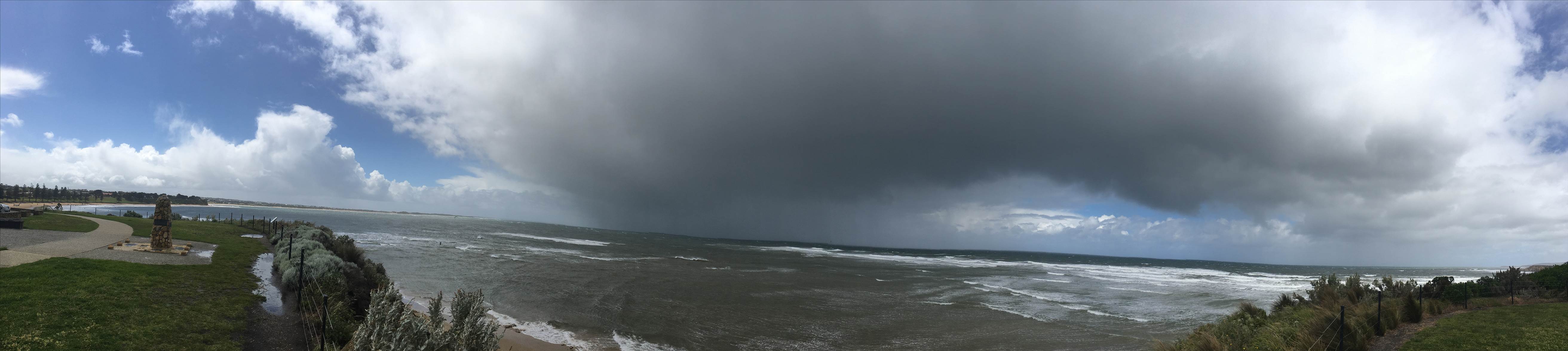 It was windy , raining and cold. I kite at Ocean Grove between 10:00 am and noon. Started with a 7m kite then downsize to 5. I took this picture after 1 pm at Point Danger