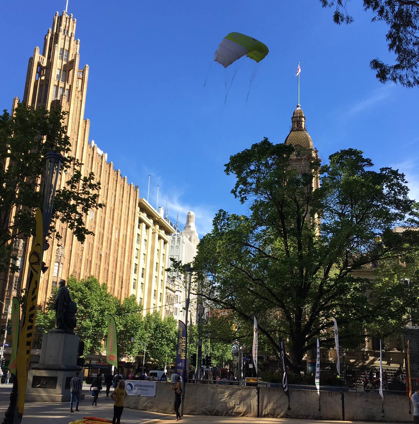 Danni Durrant OZONE - AXIS MANERA rider - managed to get a trainer kite up in the AIR stating "Well that was a first!" Kite flying in the middle of Melbourne!!