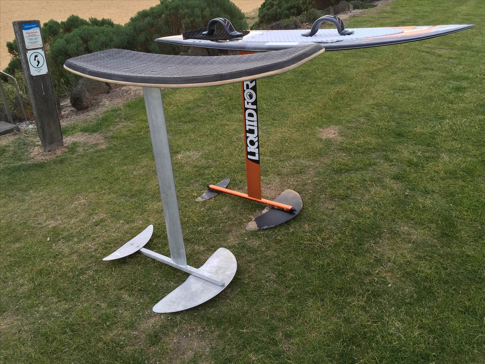 foiling behind a boat is a lot different to behind a kite.. no tacking, no need for up wind ability.. and drag isn't a huge problem considering you've got a V8 pulling you around.. much easier !