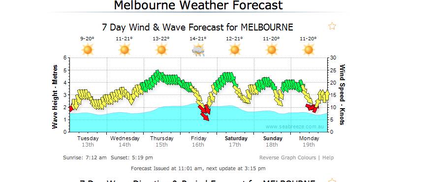 For the Rye area, you need to look at South Channel Island, http://www.baywx.com.au/schan.html, then, at the bottom of the page in blue, the Blairgowrie Observations: www.bys.asn.au/index.php?option=com_content&view=article&id=70&Itemid=91. You might also look at the Rye Weather Obs and Cams www.ryeweather.com.au/, but I find this turns on and off too late in the morning for me.