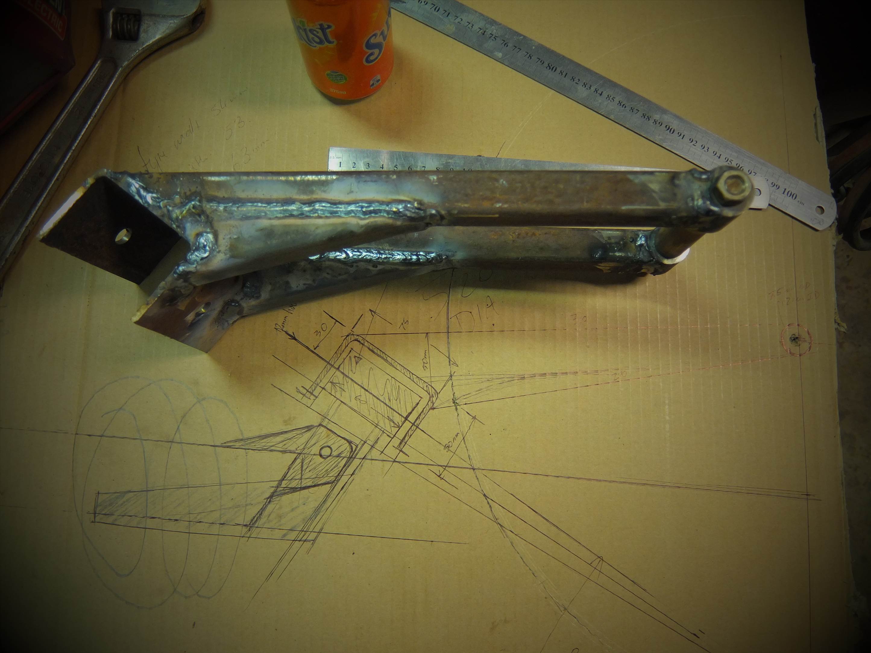 heres the progress. all a bit slow due to having to run around for customers, but its all coming out close to the actual plan. just the new steering rod to build then a shopping trip for some bolts. that little mushromm will be the anchor for the rubber inner tube wrap
