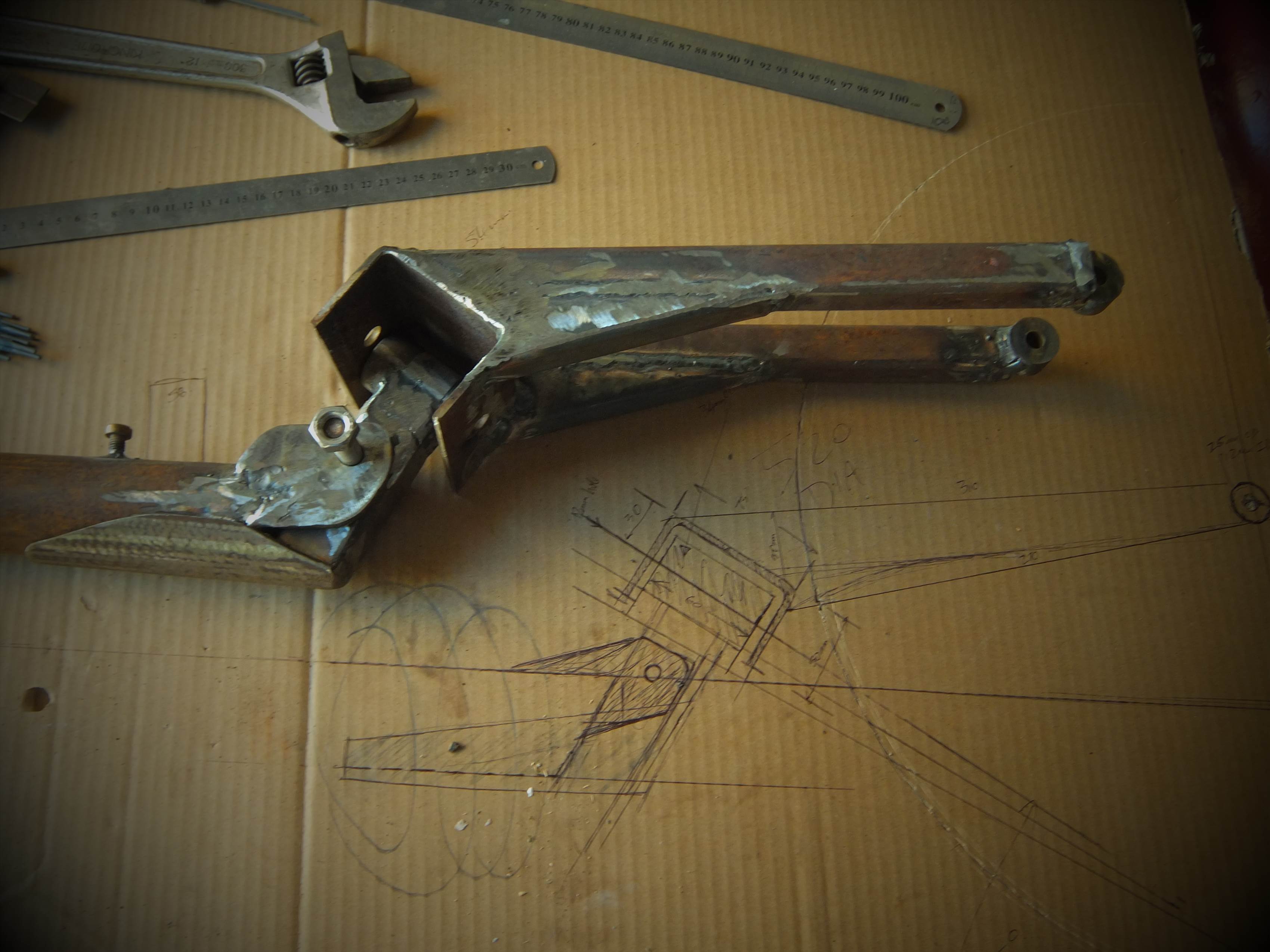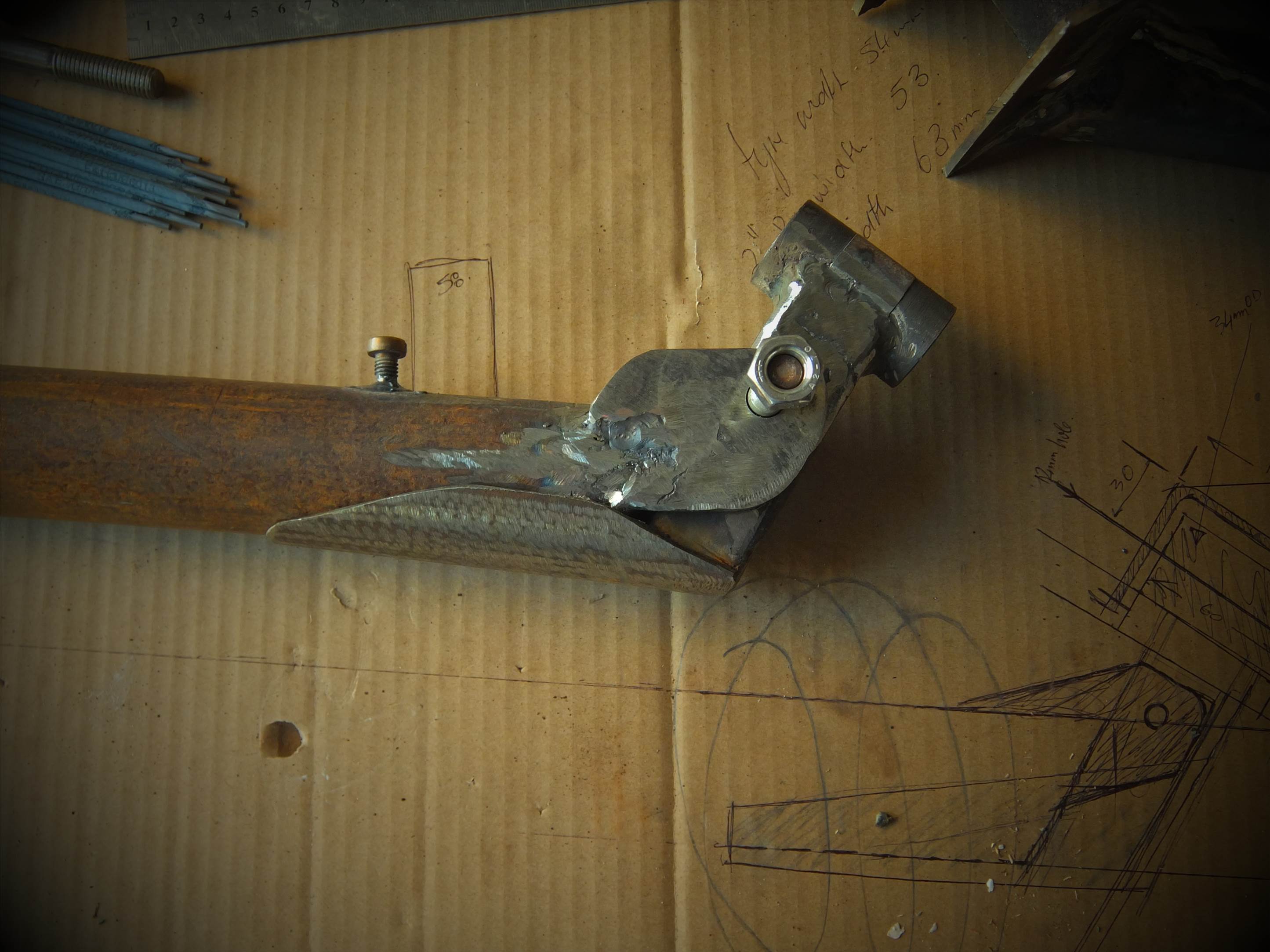 front fork looking beefy,but will look sexier when cleaned up. starting to really like my inverter welder, but its a bugger to start the arc